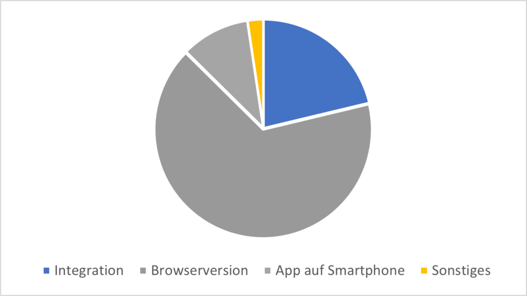 - Obwohl 85% der TeilnehmerInnen die Browserversion nutzen, greifen einige auch per App oder Integration auf CONNECT zu