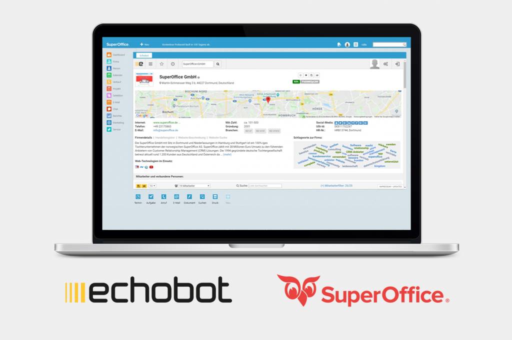 „Wir freuen uns, dass wir SuperOffice CRM Nutzern mit der Integration einiges an Recherchezeit ersparen können. Mit dem Echobot Widget erhalten sie direkt neben dem CRM-Datensatz aktuelle Firmenstammdaten, Ansprechpartner- und Kontaktinformationen, die auf Knopfdruck synchronisiert werden können.“