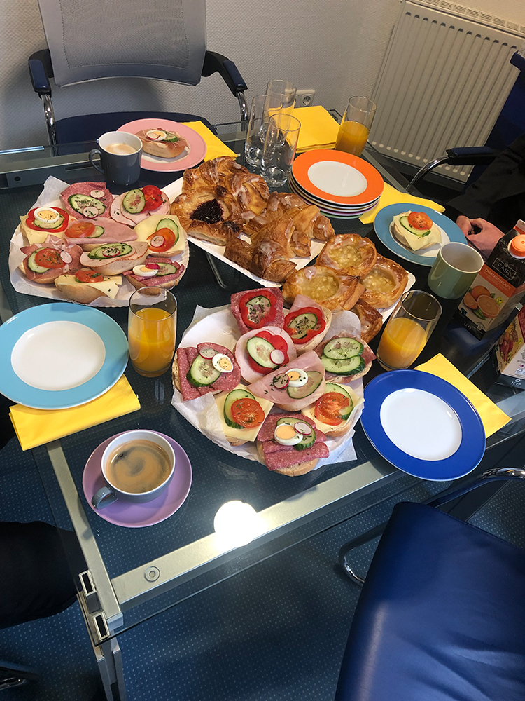 Wir wurden sehr herzlich empfangen und haben schließlich kurzerhand im Marketing-Büro den reichhaltigen Frühstückstisch aufgebaut. Mit der Marketingleiterin Karin Wünsch und der Online Marketing Managerin Elena Reimer durften wir auf diesem Weg gemütlich in den Tag starten.