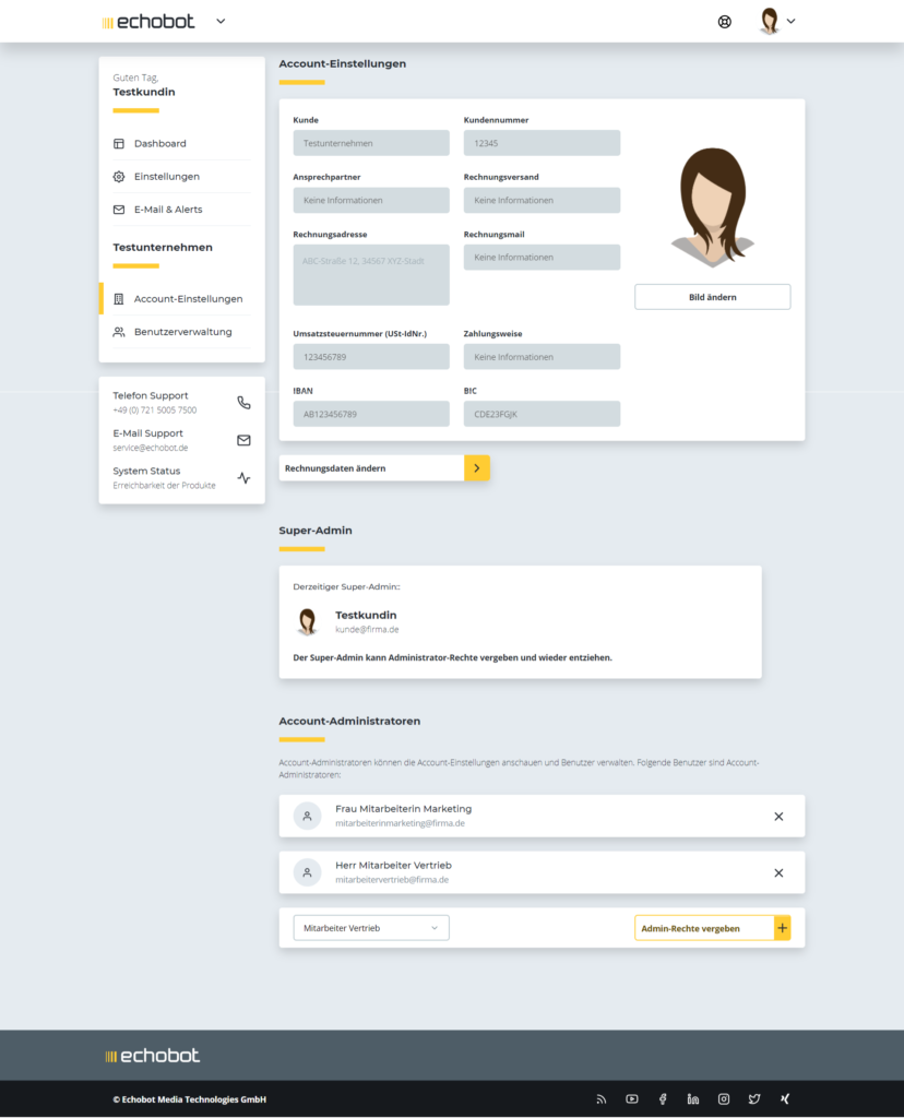 Welche Zahlungsart ist hinterlegt, wie lautet die Rechnungsadresse und stimmt die IBAN noch? All das können Sie in Zukunft in Ihren Account-Einstellungen prüfen.