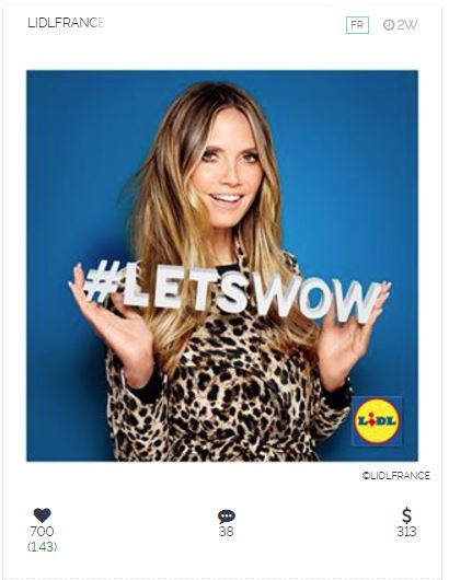 Auch wenn vor Launch der Kampagne kritisiert wurde, dass der Discounter Lidl und das Supermodel Heidi Klum Welten auseinander liegen, scheint das Konzept, zumindest auf Instagram, aufzugehen.