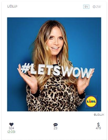 Auch wenn vor Launch der Kampagne kritisiert wurde, dass der Discounter Lidl und das Supermodel Heidi Klum Welten auseinander liegen, scheint das Konzept, zumindest auf Instagram, aufzugehen.