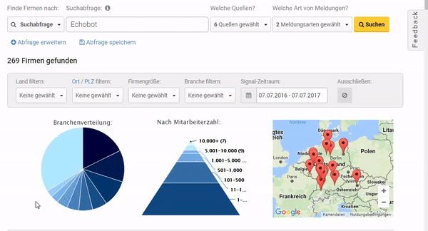 Sie möchten auch Firmen mithilfe von Finanzkennzahlen und WZ-Codes selektieren oder alle weiteren Verbesserungen ausprobieren? Dann profitieren Sie auch von den Updates und testen Sie Echobot unverbindlich: