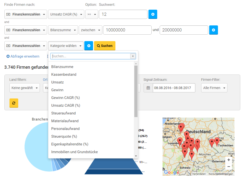 Firmenselektion nach Finanzkennzahlen: