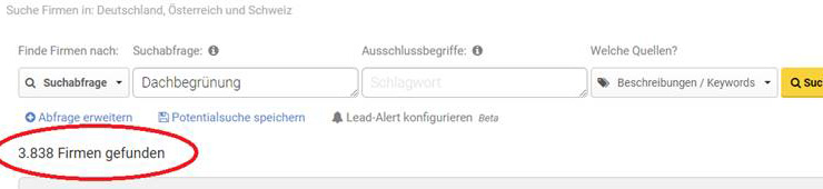 Auch wenn der Unterschied nicht in allen Fällen so extrem ist, verdoppelt sich im Durchschnitt die Anzahl der gefundenen Firmen – davon sind 94% höchst relevant.