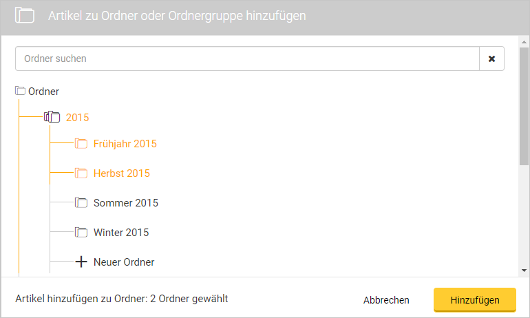 Manche Artikel passen inhaltlich zu mehreren Themen. Deshalb können Sie einen Artikel jetzt in einem Zug gleich mehreren Ordnern hinzufügen. Und damit Sie nicht den Überblick verlieren, zeigen wir Ihnen an, wieviele Artikel in den jeweiligen Ordnern schon abliegen: