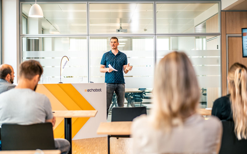 Vergangenen Donnerstag, am 8. Juli 2021, fand der ECHOBOOST Digital 2021 statt. Dieses Mal in einem anderen Setting: Wir begrüßten alle Speaker unter geltenden Hygienestandards in unserem neuen Echobot-Office in der Karlsruher Oststadt. Von dort wurden die Vorträge live übertragen.