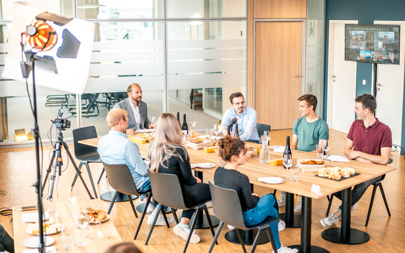 Selbstverständlich durfte eine entspannte Möglichkeit zum anschließenden Austausch nicht fehlen. Nach dem großen Erfolg unserer digitalen Bier- und Weinproben im vergangenen Jahr, konnten wir dieses Jahr die Molkerei Wissmann gewinnen. Im digitalen Käse-Tasting probierten wir uns durch eine Vielzahl an würzigem und vollmundigem Käse. Dazu bekam jede/r noch ein Gläschen Wein – Networking at its best sozusagen!