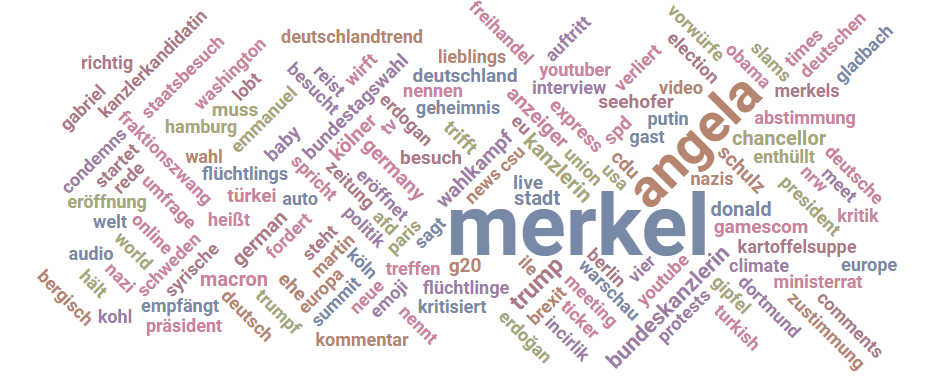 Echobot MONITORING bietet eine tolle Funktion, um auf einen Blick die Themen zu erfassen, die im Zusammenhang am meisten genannt werden. Natürlich interessiert uns brennend, wie die TagCloud um die amtierende Kanzlerin aussieht: