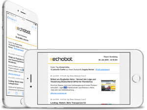 “Mit Echobot konnten wir unsere Medienbeobachtung und -analyse spürbar beschleunigen sowie effektiver präsentieren. Auch für unsere Kunden eine echte Alternative zu klassischen Clippingdiensten. Der Kundenservice ist jederzeit lobenswert!”