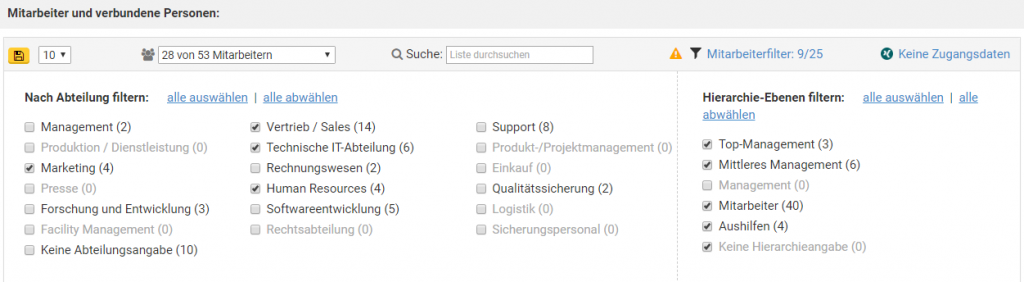 Mitarbeiterfilter in der Sales Intelligence Platform von Echobot